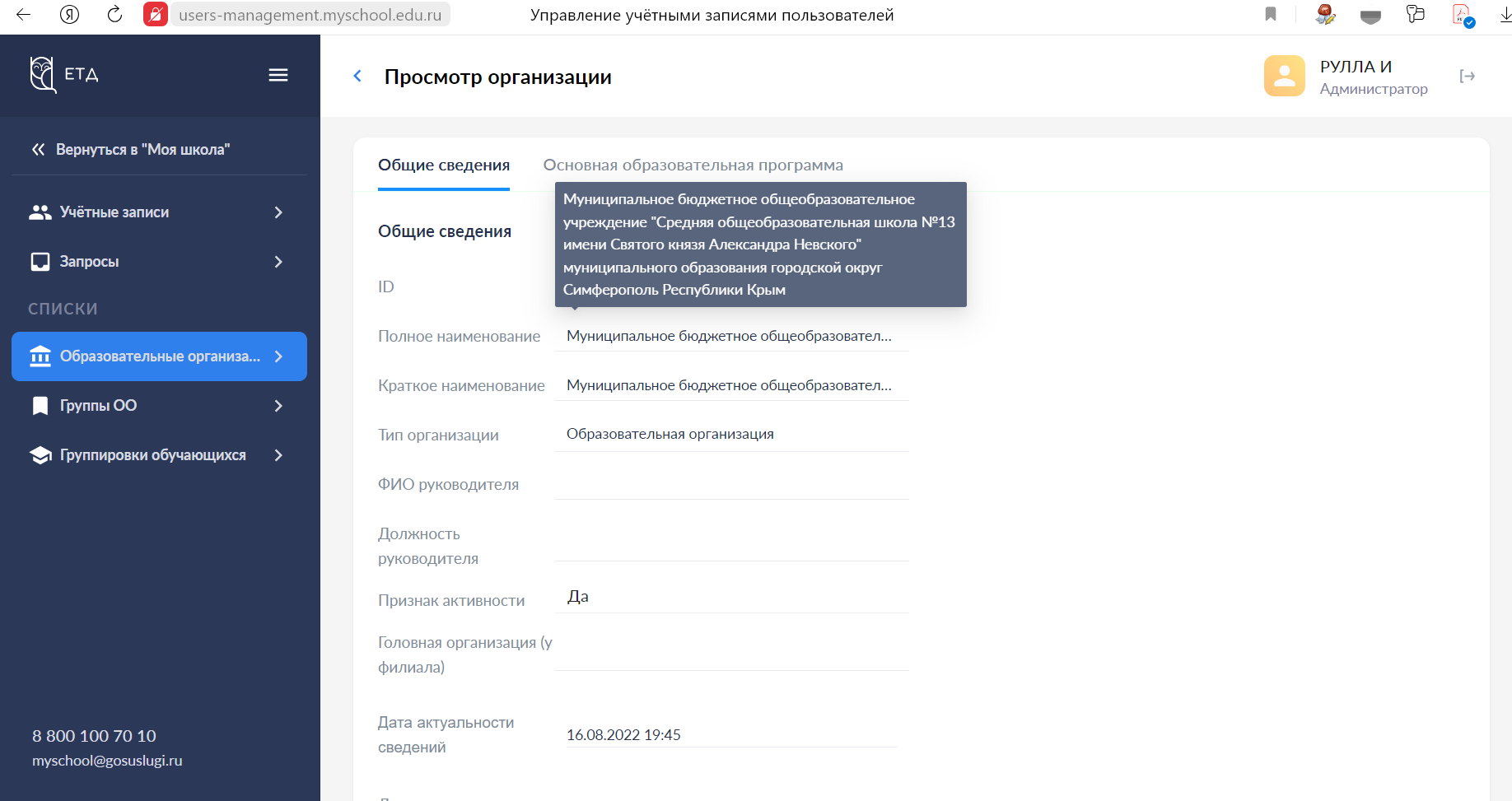 Муниципальное бюджетное общеобразовательное учреждение "Средняя общеобразовательная школа №13 имени святого князя Александра Невского" муниципального образования городской округ Симферополь Республики Крым